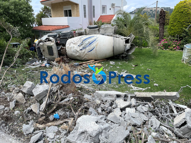 Μπετονιέρα εξετράπη της πορείας της και βρέθηκε σε αυλή μονοκατοικίας στους «Τρείς»